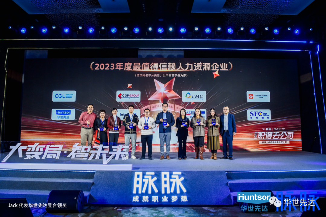 2023年12月15日,2023脉脉MAX 年度职场力量盛典暨年度“职得去”公司颁奖典礼在北京举行,华世先达凭借全面的客户服务和扎实的交付实力,荣获“最值得信赖人力资源企业”奖,华世先达创始合伙人Jack 邱辉作为代表登台领奖。